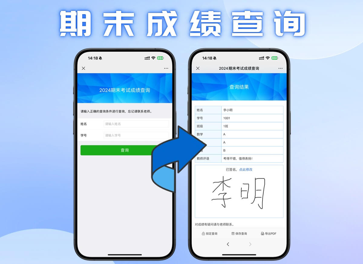 如果老师们想发布成绩更省心的话推荐老师们使用易查分小程序:用易查分私发学生的期末成绩,学生或家长扫描老师发布的二维码,便可以查询到自己的成绩信息,而且只有本人能够查询,保障了信息的安全性,老师仅需一分钟即可生成一个查询系统,十分方便。